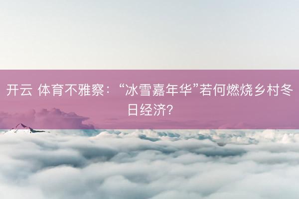 开云 体育不雅察:“冰雪嘉年华”若何燃烧乡村冬日经济?