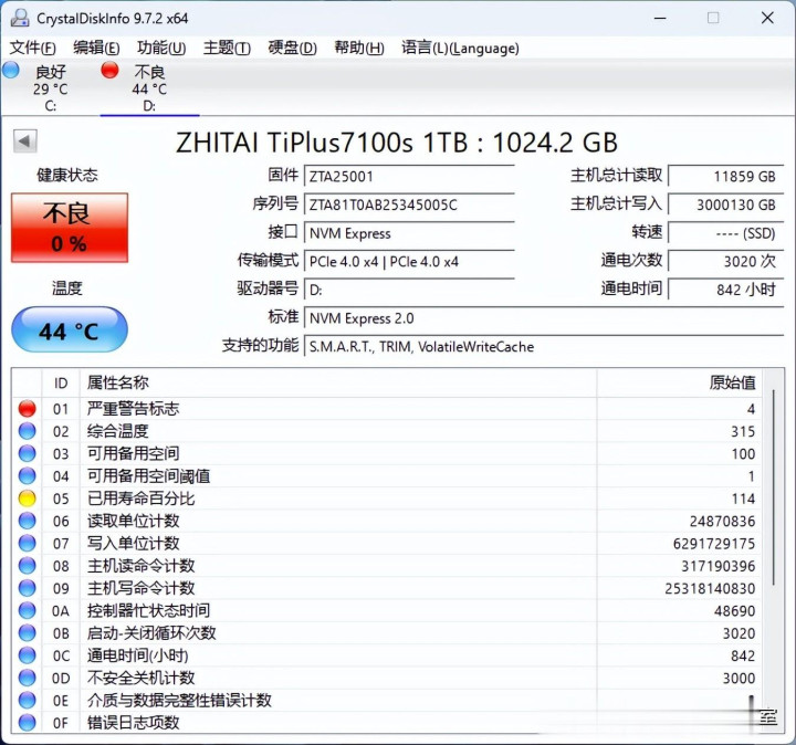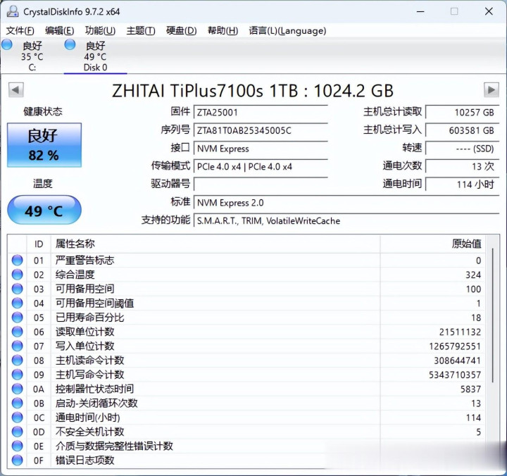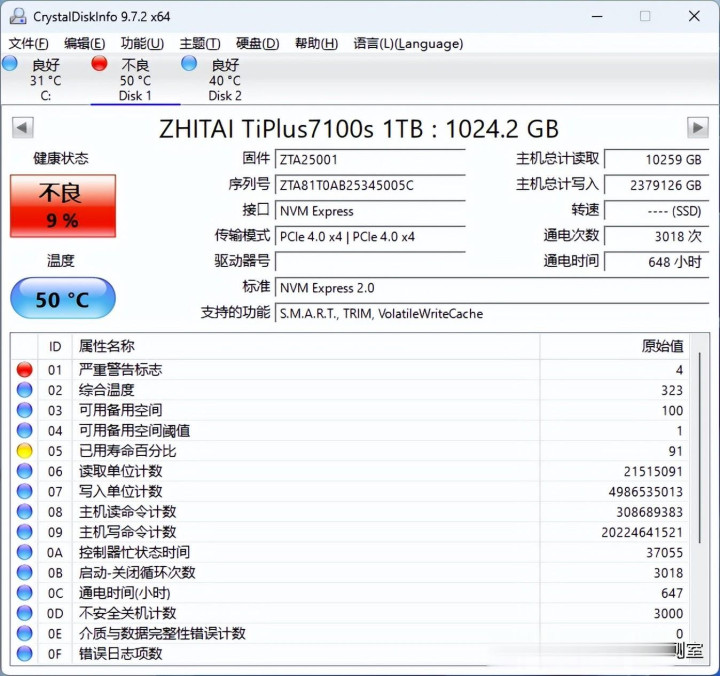 看来,致态TiPlus7100s提前出现的SMART 01项蜕变和写入限速,其实齐是致态对SSD使用情况的友好提醒,不详也算是另一种模式的“反向虚标”。在闪存本事不停发展的时期,咱们需要的不是持久度无穷但价钱雷同畸高的SSD,浅显说即是“传家宝”并不稳当无为用户。致态TiPlus7100s由高品性原厂闪存打造,为可靠性和耐用性提供了坚实的基础。在超量使用后还有固件稳稳看管和提醒,在某种进度上这才是最理念念最贴心的消费级SSD典范。