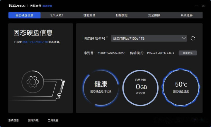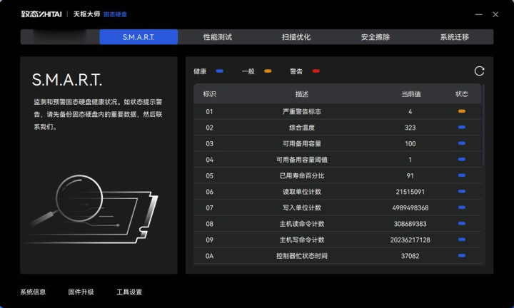 翻开致态天枢大家器用箱软件,运转气象走漏为“健康”。