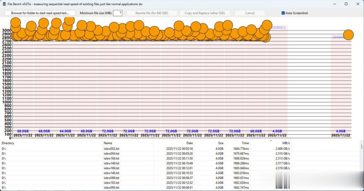 接下来准备进行最终的数据保抓才能测试,当先向致态TiPlus7100s 1TB盘内复制200个4GB容量的测试文献,欺诈Md5Checker记载文献的校验值,并通过File Bench记载下盘内文献的读取速率:平均2656MB/s