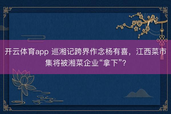 开云体育app 巡湘记跨界作念杨有喜,江西菜市集将被湘菜企业“拿下”?