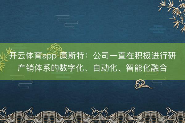 开云体育app 康斯特:公司一直在积极进行研产销体系的数字化、自动化、智能化融合
