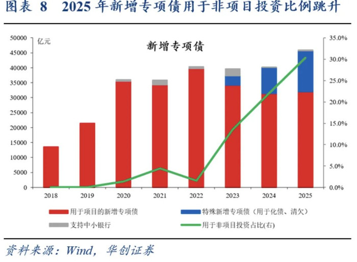 根据中诚信国际研究院数据,从预算安排来看,2025年新增专项债限额4.4万亿元,其中0.8万亿元为用于化债的额度,据估算用于清欠政府拖欠企业账款的专项债额度约0.5万亿元、土储专项债额度约0.6万亿元左右,由此估算的用于基础设施建设项目的专项债额度仅2.5万亿元,较2024年(3.12万亿)减少4000多亿元。