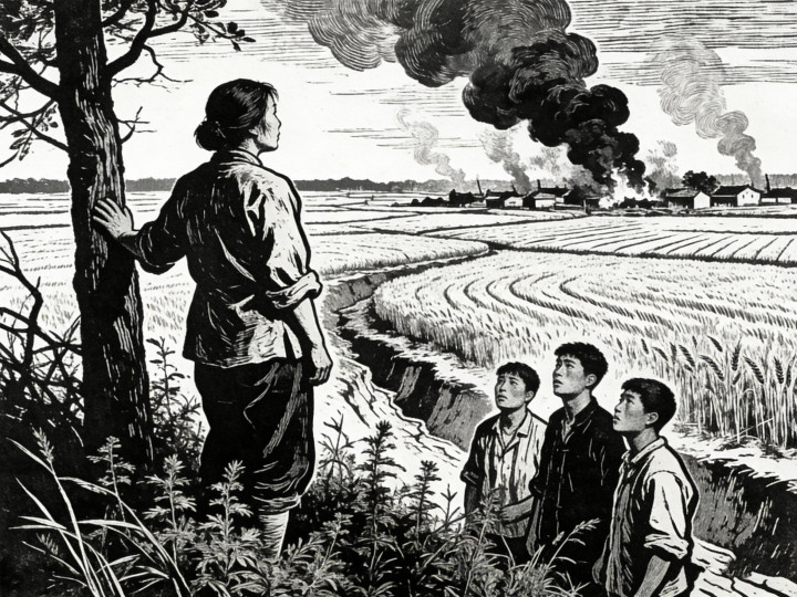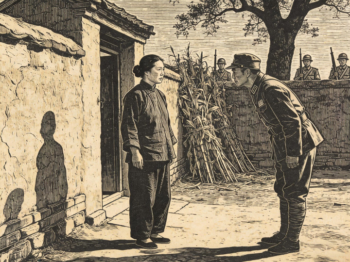 刘陆氏往后一躲,那鬼子手落了空,却不恼,反倒笑得更邪乎了。他扭头朝死后的几个兵挥了挥手,嘴里叽里咕噜说了几句。那几个兵嘻嘻哈哈笑着,往后退了几步,站在院墙外头,还顺遂把破木门掩上了。