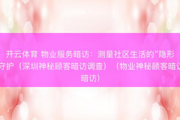 开云体育 物业服务暗访:测量社区生活的“隐形”守护(深圳神秘顾客暗访调查)(物业神秘顾客暗访)