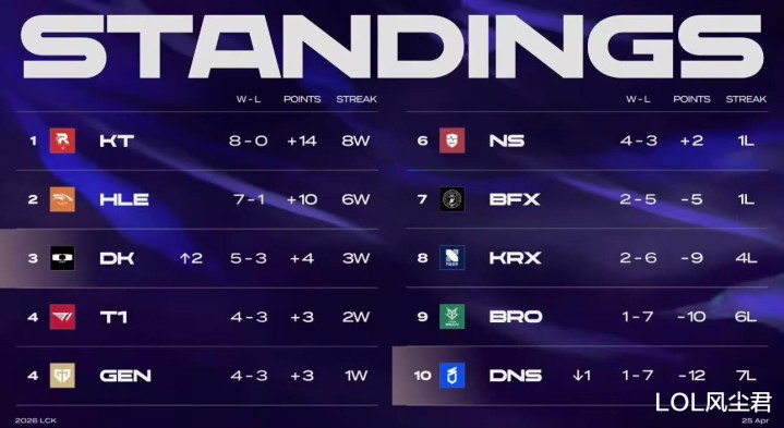 LCK第二赛段老例赛,还是进行到第三周了,DK在赢下T1之后,碰到了两支实力相比弱的戎行,景象火热的许哥,上一场带队2:0轻取DNS,收货三连胜的DK,咫尺战绩还是来到5-3了,见效挤进积分榜前三,只消强队拉胯许哥就升起,看来本年,许哥是还有契机,带队重铸LCK荣光的。