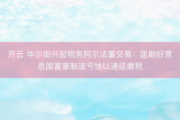 开云 华尔街兴起税务阿尔法重交易:匡助好意思国富豪制造亏蚀以递延缴税