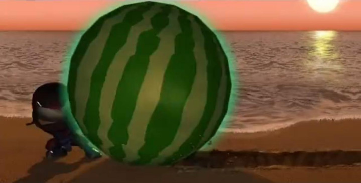 而宫本矿藏,这个信奉武士说念精神的武士,出头出头,用西瓜召唤奏凯反击,战胜了忍太郎。两个东说念主的通关动画,一个酷炫,一个搞笑,小时刻总可爱反复切换着看,争论到底谁更狠恶。